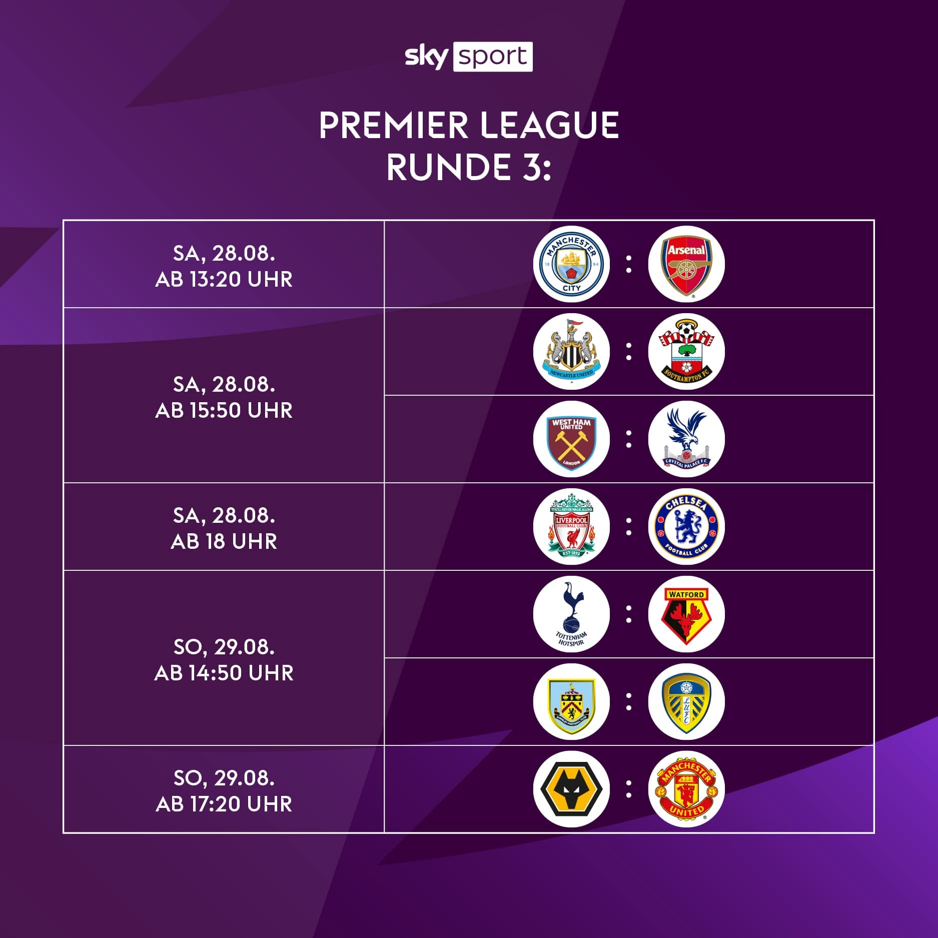 Wir aktualisieren die Tabelle fortlaufend weiter. Das Finale wird am 25. September der letzte am 9.